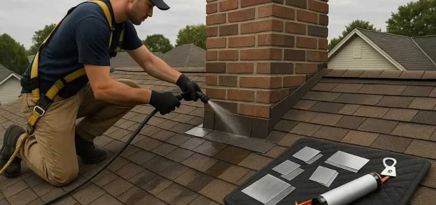We examine crown slope, cap fit, mortar joints, brick or stone surfaces, and flashing transitions at the roofline. In North-King Subdivisions, Bowmanville this area is often the origin of leaks.